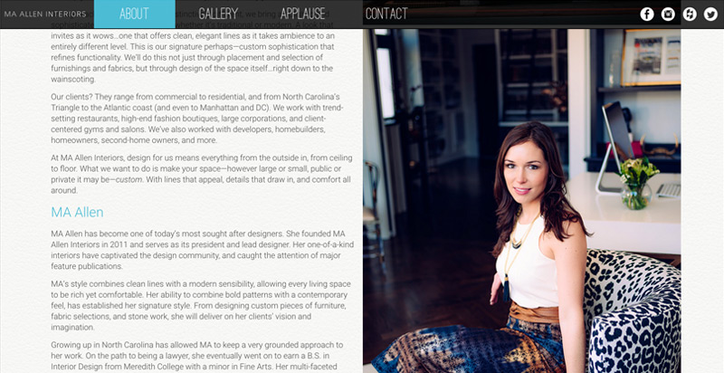 MA Allen provides a very unique, high quality, award winning style. They needed a site that was different and visual engaging. Incorporating canvas into the navigation on the homepage gives it the custom touch that compliments the beauty of the interior design.