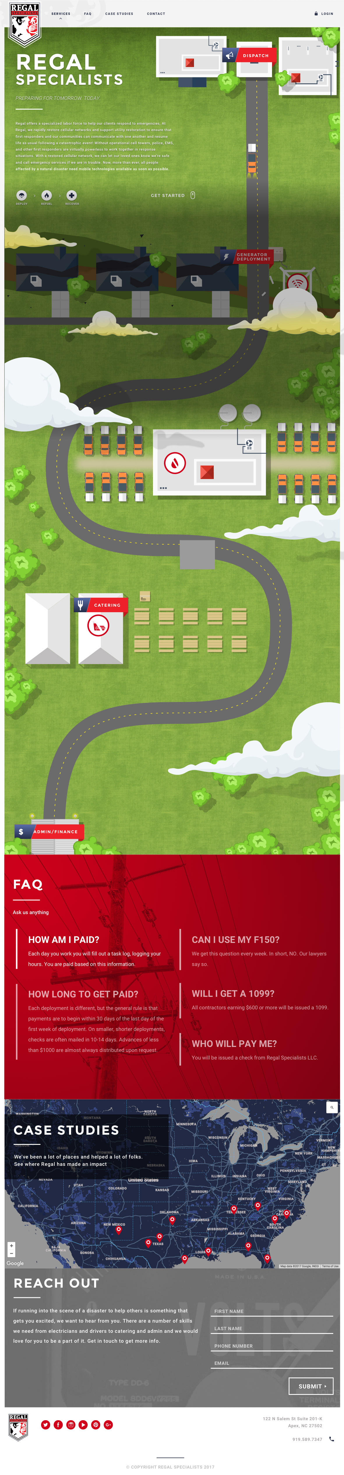 Regal Specialists is a disaster recovery company that helps those in need. When they were in need of a new web presence, we decided they neeeded an engaging experience to host their content. Keeping it engaging and interactive was important, while keeping it light and fast on mobile. Overall, the client was thrilled and lead to a great piece.